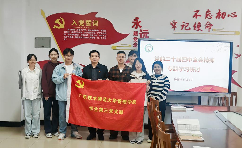 为深入学习贯彻党的二十届四中全会精神,引导青年学子将个人成长融入中国式现代化建设大局,11月5日中午,管理学院在白云校区第一教学楼425会议室召开学习贯彻党的二十届四中全会精神学生党员座谈会。管理学院党委书记陈军、学生第三党支部书记庄信畅,以及学生第三党支部的党员、入党积极分子参加了活动。