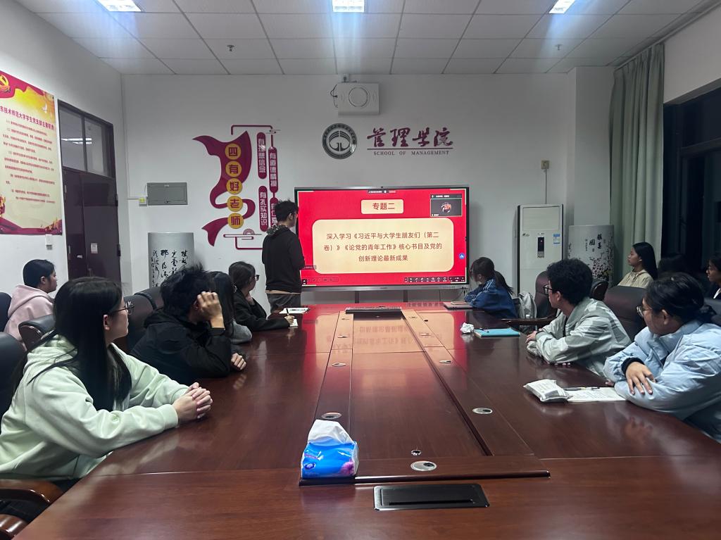 为深入学习宣传贯彻党的二十届四中全会精神,认真学习领会习近平总书记致全国学联二十八大的重要贺信和党中央致词精神,筑牢青年学生理想信念根基,12月16日,管理学院团委、学生会组织在白云校区一教402会议室组织开展“青春向党 学思践悟”集体学习暨“青春年少好读书”活动。学院团委、学生会全体成员全员参与,线上线下同步掀起学习热潮。