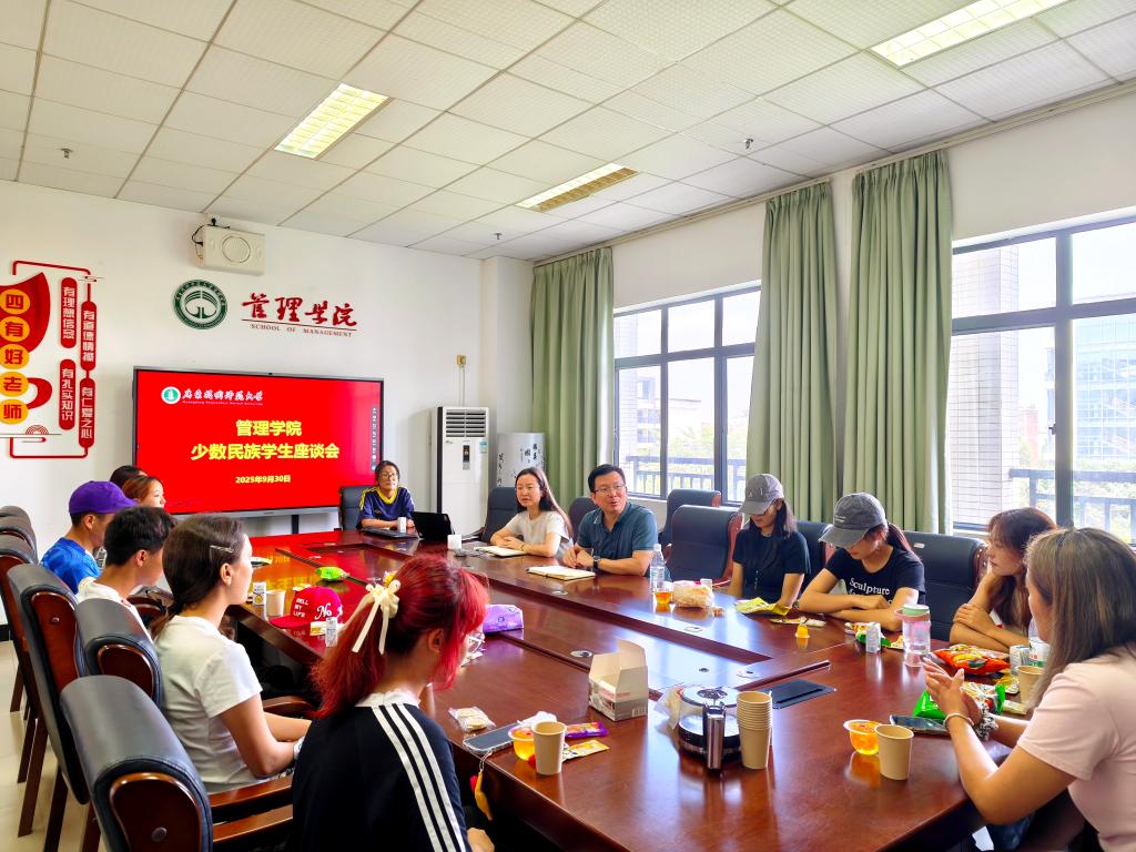 为深入推进民族团结进步教育,落实立德树人根本任务,9月30日,管理学院在白云校区第一教学楼502会议室召开少数民族学生座谈会。管理学院党委书记陈军,党委副书记王婷婷、辅导员龚炜博及少数民族学生代表参加本次活动。