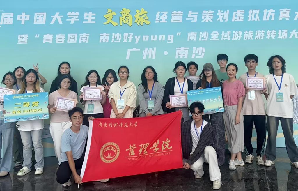 8月19日至24日,第三届中国大学生文商旅经营与策划虚拟仿真大赛决赛暨“青春图南 南沙好Young”南沙全域旅游转场大赛在广州市南沙区隆重举行。经过五日的激烈角逐,由管理学院张海燕老师和邹蔚菲老师指导的雷欣慧团队(队员:王舒于、邱灿、欧海康)、符航榆团队(队员:冯标竹、刘美雪、蓝萍芳)及刘美新老师指导的何晓彤团队(队员:孙婷婷、郑希敏、刘昕荷)荣获全国总决赛二等奖;唐金稳老师和邹蔚菲老师指导的李升镇团队(队员:刘芸君、黄晓敏、陈炜斯)、杨黉稹团队(队员:吴梦茹、王耀萱、郑嘉怡)及郑玉标团队(队员:谭希蓝、韦永通、黄贤涛)荣获三等奖。此外,符航榆团队还荣获“青春图南 南沙好Young”南沙全域旅游转场短视频大赛二等奖。