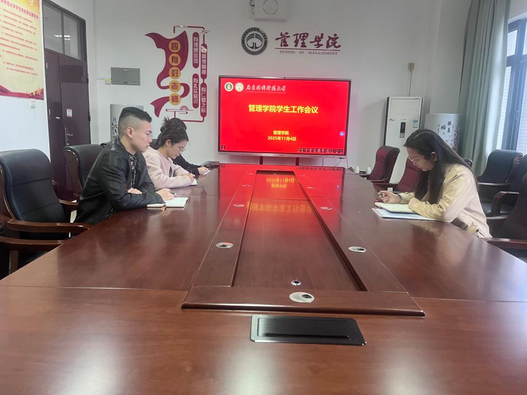 11月4日,管理学院党委副书记王婷婷在一教502会议室主持召开学生工作例会,围绕学生日常管理、心理健康教育及"做人好、就业好、身体好"育人目标推进情况展开部署,学院全体辅导员参会。