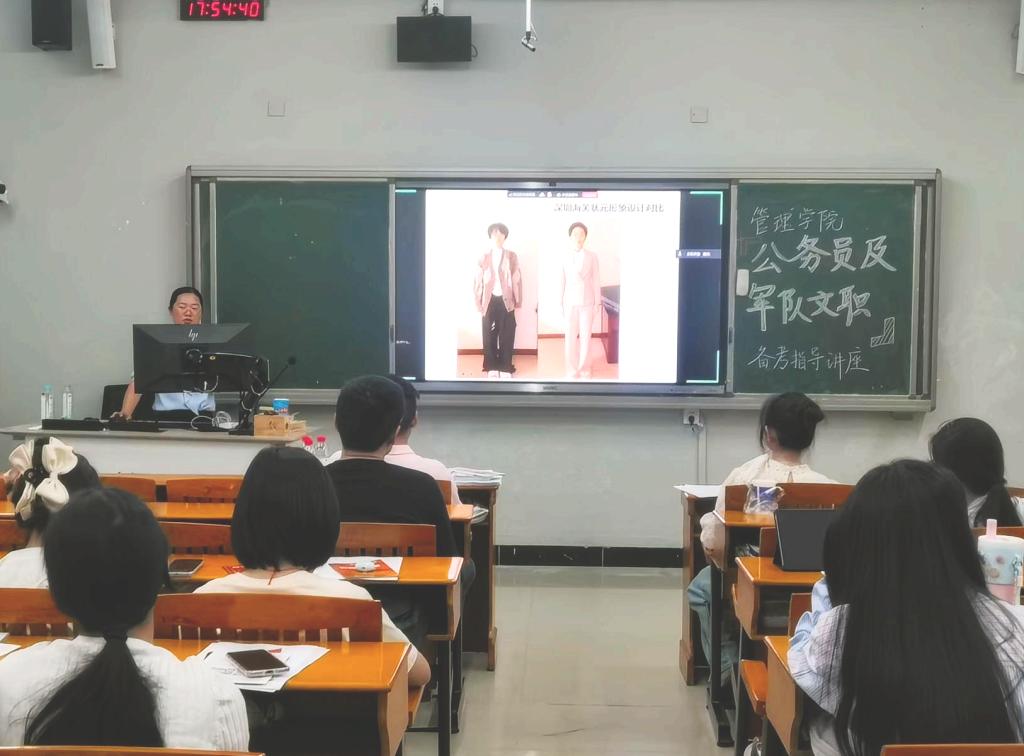 本次讲座帮助学生全面深入地了解了公职类考试的知识要点与备考技巧,进一步厘清了就业目标,增强了求职信心。未来,管理学院将持续搭建就业指导平台,助力学子在求职过程中精准发力、成功“上岸”。