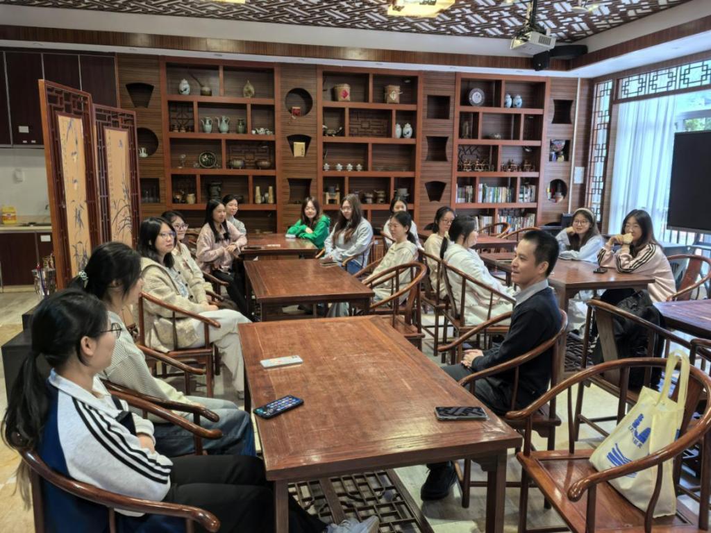 曾韬教授首先在茶艺实训室与学生座谈,共同讨论学生实习的教学与班级管理等情况并总结经验,对实习同学的积极表现给予了肯定评价,并对存在的问题提出了建议。