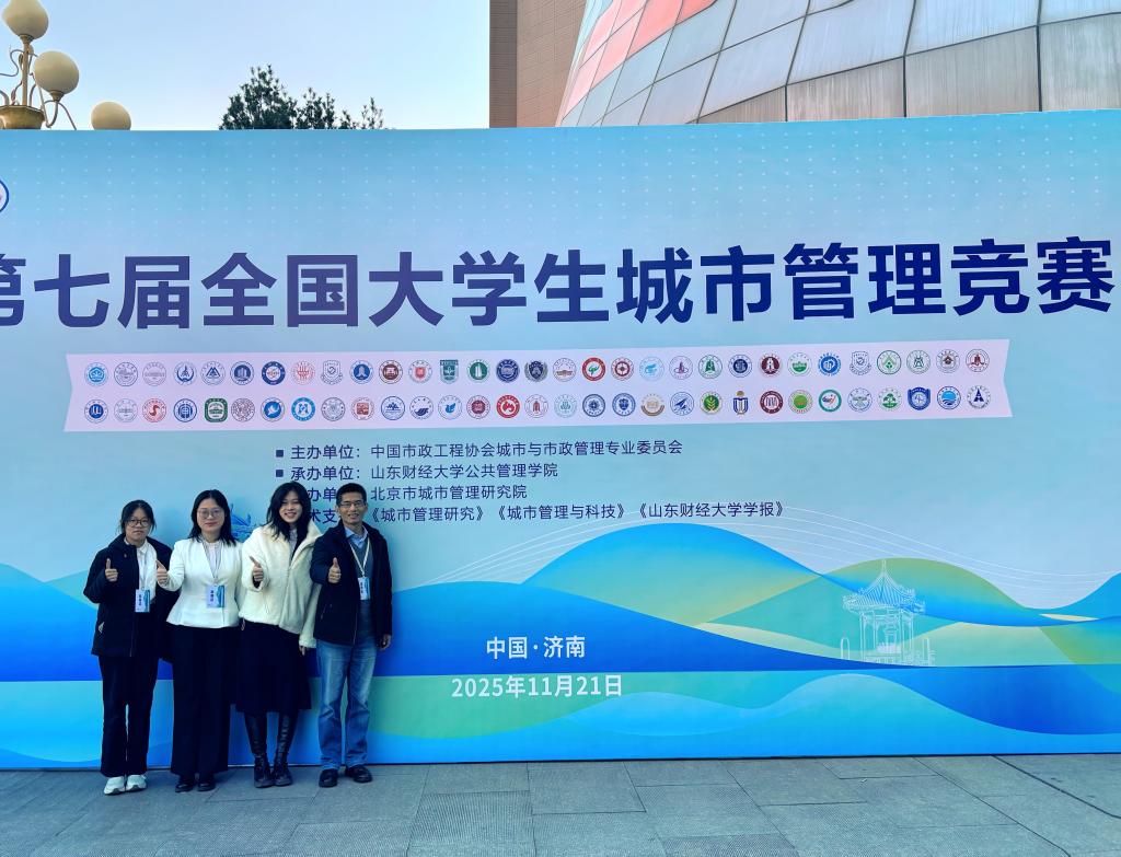 第七届全国大学生城市管理竞赛于2025年11月22日在山东济南圆满落幕,本届竞赛由中国市政工程协会城市与市政管理专业委员会主办,山东财经大学公共管理学院承办。在本次比赛中,管理学院代表队成功入围决赛环节,由毛林洁、柯雯婷、蔡汝欣等7名管理学院本科生组成的团队(指导老师:唐斌),与来自南开大学、天津大学、兰州大学、电子科技大学、中南财经政法大学等多所高校的优秀学子同场竞技。经过激烈角逐,管理学院代表队凭借出色的表现最终荣获二等奖。
