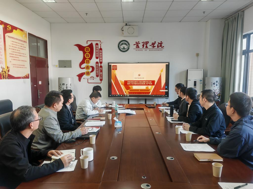 为深入学习贯彻党的二十届四中全会精神,全面落实习近平总书记视察广东和出席第十五届全国运动会开幕式重要讲话重要指示精神,积极争创新优势,实现新突破,以全面深化改革推动学院高质量发展,12月19日上午,管理学院在白云校区一教502会议室召开党委理论学习中心组2025年第5期学习扩大会。学院领导班子成员、党委委员、教工党支部书记、党政办主任、专职组织员及新进教师代表参会,会议由学院党委书记陈军主持。