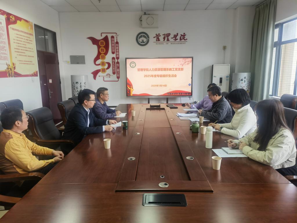 1月16日上午,管理学院人力资源管理系教工党支部在白云校区一教502会议室召开2025年度民主评议党员暨专题组织生活会。会议由党支部书记胡云洋主持,支部全体党员参加了会议。