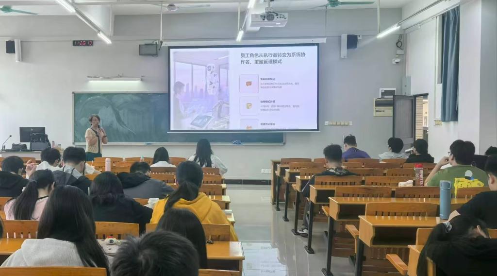 为了更好地帮助学生理解数字化在企业实践中的运用,10月21日管理学院产业教师张琳参与《数字化经营与管理》课程教学,为2023级工商管理、人力资源管理专业学生带来了一场精彩的讲座。