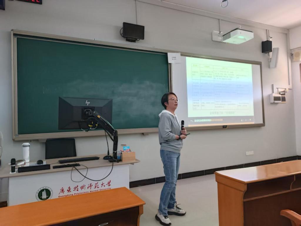为深化产教融合,提升人才培养质量,管理学院产业教师张琳走进课堂,参与人力资源管理专业《社会保障理论与实务》课程教学。12月18日下午,张琳老师在白云校区第二教学楼303室为人力资源管理专业2023级学生开展题为《从企业社会保障实务看合规与激励的双重智慧》专题讲座。