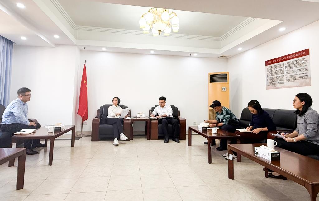 11月17日下午,调研组首先前往韶关市政府,与市政协副主席卢春燕举行座谈。双方围绕韶关市和仁化县的文旅产业发展状况、存在问题以及未来规划思路等内容进行深入探讨交流。卢春燕对调研组前期完成的仁化县民宿产业、研学旅游发展调研报告给予高度评价,并提出有针对性的修改建议。